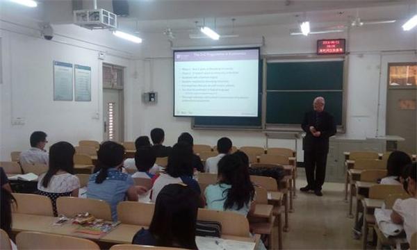 2014年6月11日上午9点,Ian Whitfield教授来到兴隆山校区,为学院2013级本科生做了beats365亚洲版官网-英国杜伦大学2+2联合培养项目宣讲以及行为金融学领域的学术小讲座。讲座中,Ian首先介绍了杜伦大学和商学院的基本情况和国际化程度,以及杜伦大学极具特色且有着悠久历史的学院制。其次,Ian介绍了商学院经济学专业的课程设置和转学分情况,以及学位取得和员工毕业去向等情况。最后,Ian就员工关心的在杜伦大学的成绩评定、继续深造等问题进行了一一解答。宣讲会后,Ian还 为在座的员工就行为金融学的课程及研究内容与方向等做了饶有兴趣的学术小讲座。