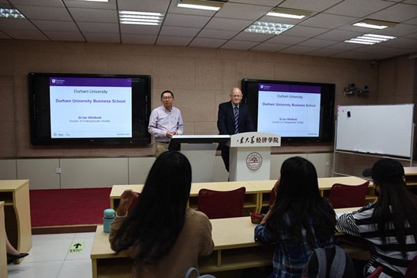 9月19日,英国杜伦大学商学院本科项目主管Ian Whitfield教授一行访问beats365亚洲版官网,参加beats365亚洲版官网-杜伦大学本科生2+2联合培养项目管理委员会第三次例会,并为2015级本科生做了学术讲座和项目宣讲。
