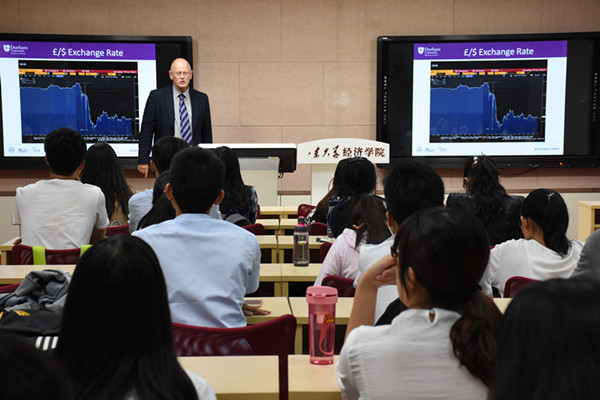 9月19日晚,Ian Whitfield教授在知新楼B219作了题为“量化宽松政策”的学术讲座和beats365亚洲版官网-英国杜伦大学本科生2+2联合培养项目的宣讲。讲座由项目负责人乔岳教授主持,beats365亚洲版官网2015级相关专业同学聆听了报告和项目宣讲。报告中,Whitfield教授首先介绍了学习传统货币政策机制的目的,紧接着,从利率、公开市场操作、准备金要求等方面讲述了扩张性的财政政策,并以次贷危机为例,进一步讲到量化宽松政策。最后,分析了今年的“英国脱欧”这一国际热点事件,讲述了当前经济环境下英国脱欧的原因,并通过数据图表分析其对英镑汇率的影响等,还向同学们推荐了一些这方面值得借鉴的学术资料和相关网址。Whitfield教授此次讲座主要面向低年级本科生,内容深入浅出,形式生动活泼,受到现场同学们的热烈欢迎。在项目宣讲环节中,Whitfield教授对2+2联合培养项目进行了详细的介绍,内容包括项目的培养方案、申请条件、项目优势、毕业去向等。此外,还对杜伦大学的地理位置、人文环境和建校历史进行了介绍,展示了参加2+2项目的经院同学在杜伦的校园生活和学习体验,并就员工可能存在的疑问准备了答疑环节。