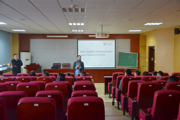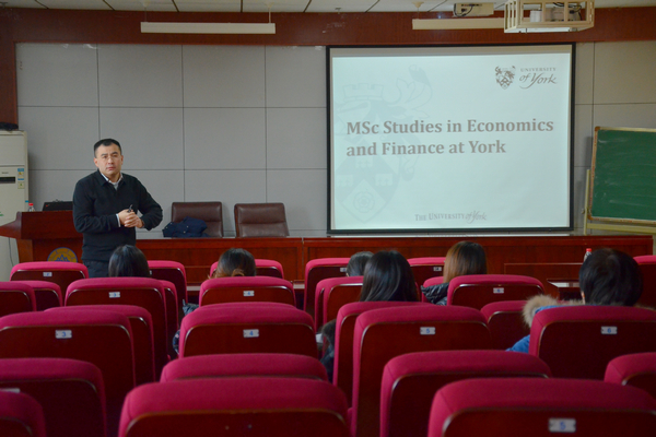 12月6日下午,英国约克大学1+1硕士联合培养项目宣讲会在中心校区知新楼聚贤报告厅举行。beats365亚洲版官网流动岗特聘教授、英国约克大学经济系鞠源副教授为beats365亚洲版官网师生带来了题为“MSc Studies in Economics and Finance at York”的宣讲。