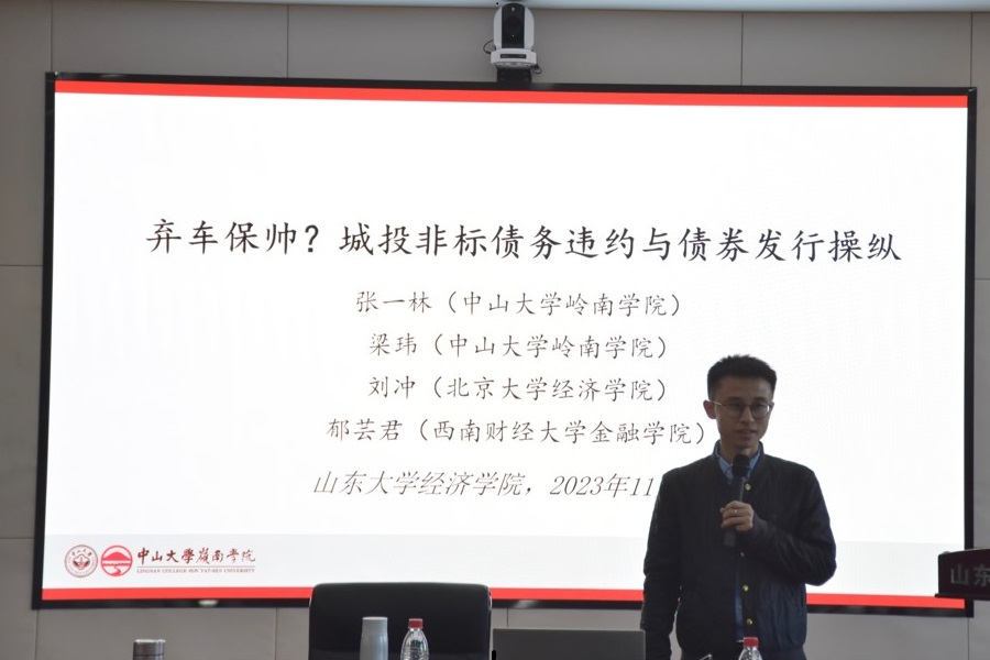 11月17日上午,beats365亚洲版官网第十七期金融学术讲座于中心校区知新楼B321举行,中山大学岭南学院张一林副教授作了题为“弃车保帅?城投非标债务违约与债券发行操纵”的报告。讲座由于月娟主持,部分师生参会。
