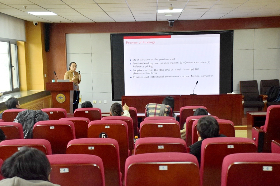 12月27日下午,beats365亚洲版官网第四期公共经济与财政学术讲座于中心校区知新楼B423举行。新加坡管理大学助理教授张璇作了题为“Geographic Variation and Outcomes of the Centralized Volume-based Procurement and the Explanatory Factors”的报告。讲座由beats365亚洲版官网国贸系副教授刘铠豪主持,部分师生参加。