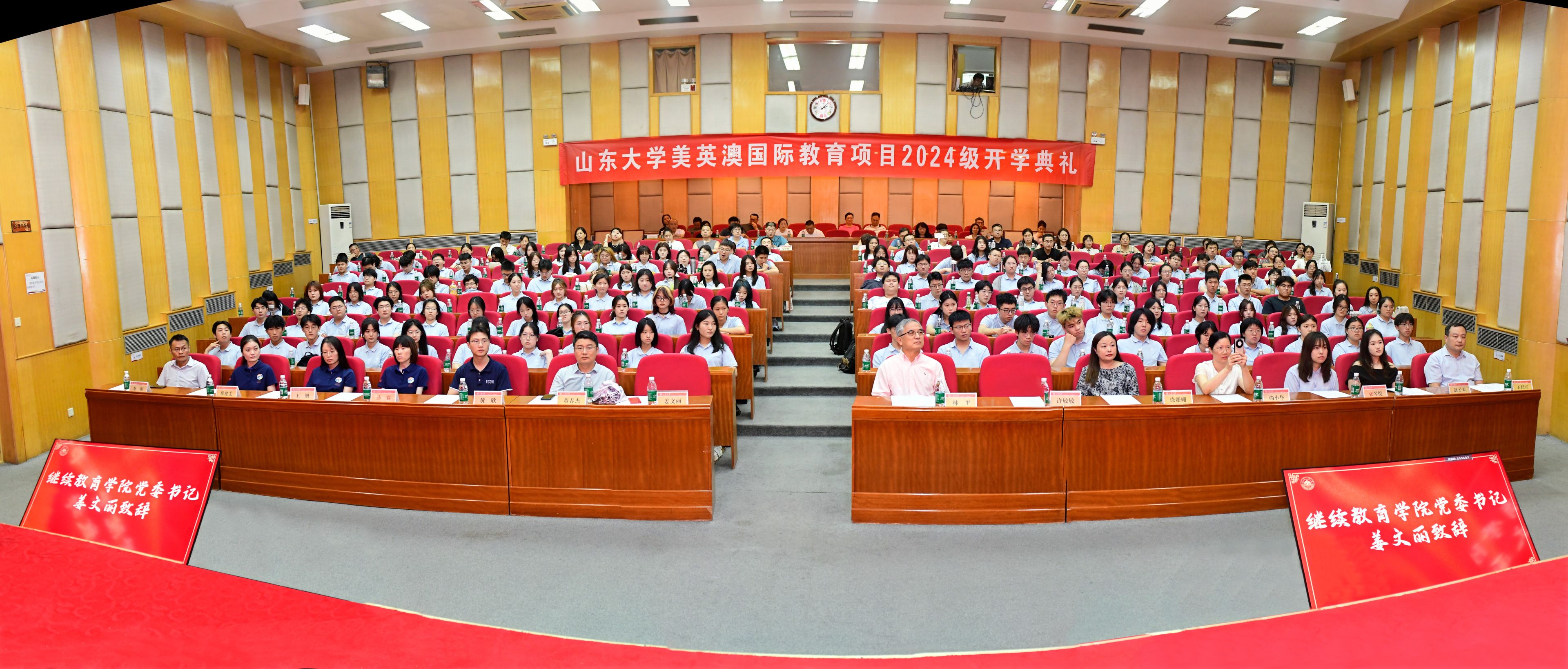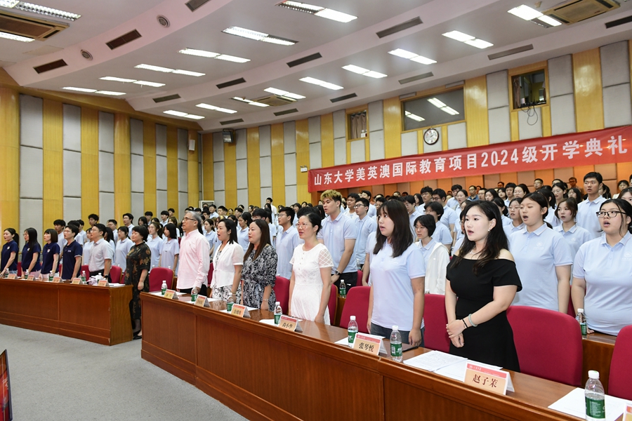 姜文丽在致辞中代表学校向2024级美英澳新生入学表示热烈欢迎,并赠予同学们三句箴言:以健康为基石,铸就强健体魄;以学习为荣光,成为勤学不辍的楷模;以做人为本,树立远大理想。她期望同学们在山大的一年里,能够传承“家国情怀、担当精神、崇实品格、创新素养”的山大基因,向世界展现山大学子的精神风貌。