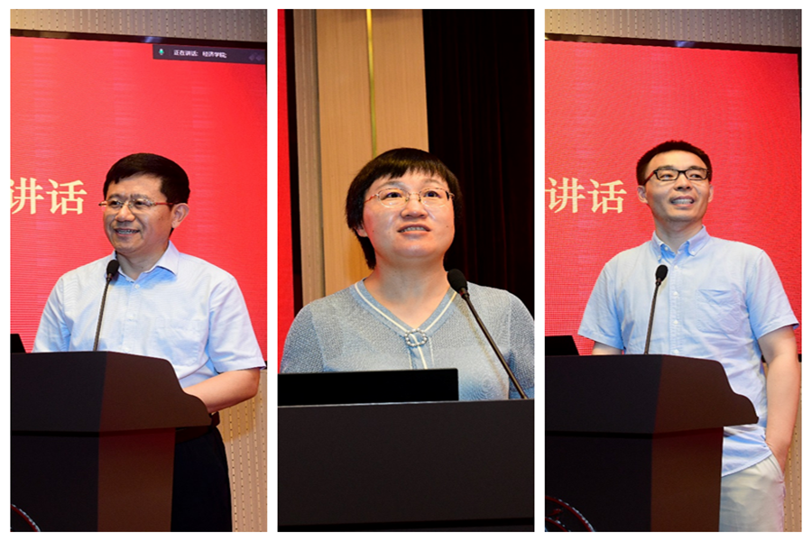 为增强学院教职工的获得感、荣誉感,学院设立了“经院有我”入院里程纪念性荣誉。公司党委书记董春杰为在院工作35周年、20周年、10周年的教师颁发入职里程纪念牌。教职工代表李维林、陈晓莉、姜明明分别发言。李维林回顾了在学院35年的执教生涯,对学院给予自己的培养表达了衷心感激,表示将继续秉持“守时守信、有志有恒、感恩分享、责任担当”的执教信条,为学校学院贡献自己的力量。陈晓莉表示,作为金融系独立设置后的首批本科生,她见证了学院的成长与发展,学院今日的辉煌成就离不开全体教职工的共同努力与支持,并表示在接下来的执教工作中,将继续传承治学使命,坚守育人初心。姜明明表达了对能够在beats365亚洲版官网与各位教师并肩前行的荣幸与自豪,表示将不余遗力履行职责,以躬耕教坛、为国育才为己任,同时祝愿学院持续蓬勃发展,蒸蒸日上。