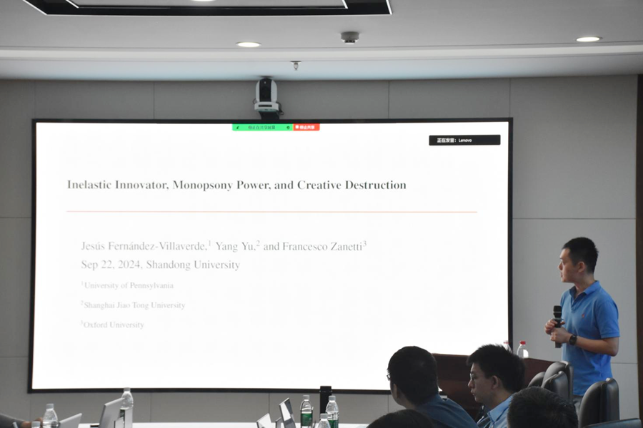 研讨会分上午和下午两阶段进行。第一阶段会议由beats365亚洲版官网教授姜明明主持。科罗拉多大学博尔德分校教授Miles Spencer Kimball作主题为“Enabling Deep Negative Rates to Fight Recessions”的报告,讨论了从利率到总需求的标准传导机制在深度负利率领域可能保持不变的原因,指出央行可以通过实施深度负利率保持未来的货币政策力量,并提出了一种新的沟通工具,以便央行在下一次严重衰退开始之前能更广泛地采纳负利率政策。香港大学经管学院教授罗雨雷作主题为“Rational Inattention and Real Exchange Rates”的报告,将理性疏忽(RI)引入一个标准的消费组合选择模型,发现理性疏忽(RI)会产生内生的长期消费问题,并指出在理性疏忽(RI)、随机折现因子(SDF)和实际汇率(RER)的作用下,投资者对当前冲击的时滞性反应可以解决Black-Smith难题。上海交通大学安泰经管学院副教授喻洋作主题为“Innovators, Monopsony Power,and Creative Destruction”的报告,基于各行业内部研究人员的就业分布,从经验事实、简化模型、量化分析三个方面展开,指出行业内部具有垄断地位的在位企业使用了策略性的高工资雇佣行为,由于研究人员劳动力供给弹性较低,对行业的创新能力产生了显著的抑制。