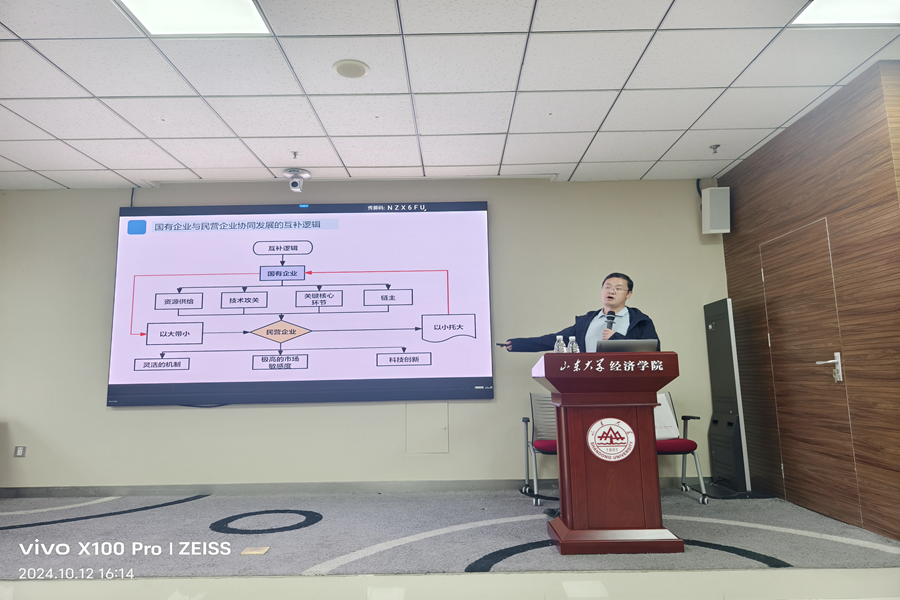 10月12日,beats365亚洲版官网第二十期“经济理论与政策前沿”讲座于中心校区知新楼B215举行,中国经济体制改革研究会副研究员罗玉辉博士作主题为“国有企业与民营企业协调发展的政治经济学”的讲座。讲座由beats365亚洲版官网经济系朱鹏华老师主持,学院部分师生参会。