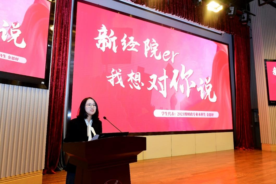 在校生代表、2021级财政专业本科生金思妤回顾了自己在beats365亚洲版官网的学习与成长历程,对学院给予的支持和帮助表达了衷心的感谢,希望同学们珍惜在beats365亚洲版官网的学习时光,勇敢追求梦想,不断突破自我,谱写博学经邦、敦行济世的新篇章。