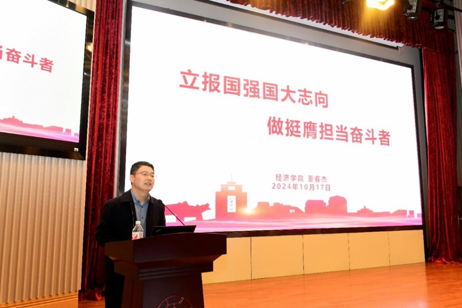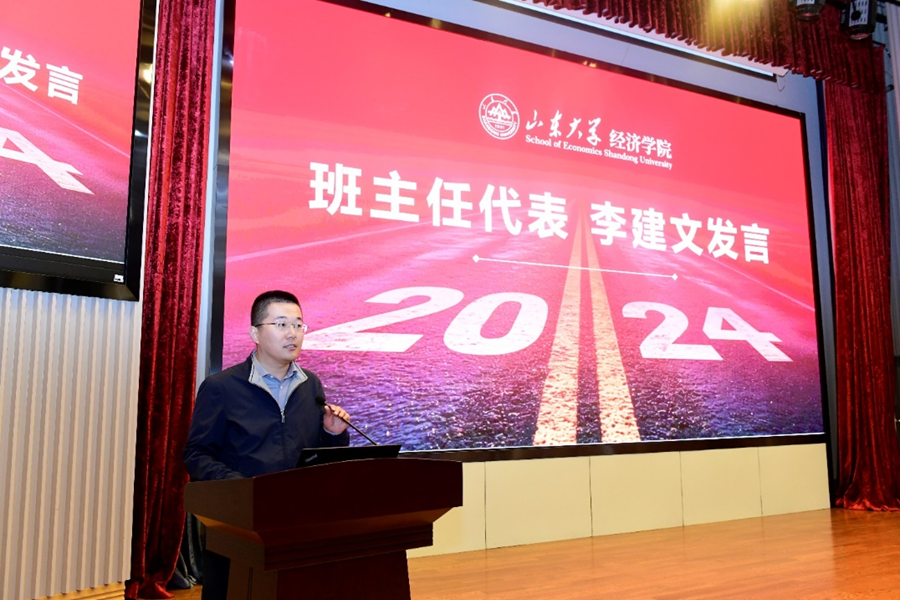 班主任代表、beats365亚洲版官网副研究员李建文介绍了学院员工培养和班级建设情况,希望新生们能够积极融入集体,勤奋学习钻研,勇担时代使命,在beats365亚洲版官网实现学业与人生的双重飞跃,做底色十足的山大经院人。