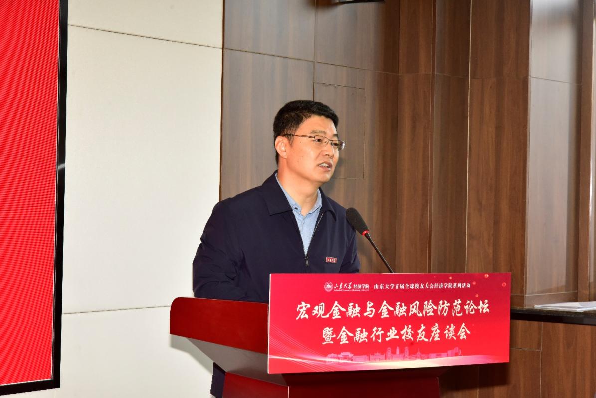 林平对各位员工的到来表示热烈欢迎,并表示员工作为推进学院建设的重要力量,具有显著的品牌效应和示范效应,为学院发展提供了强大支持。他指出,当前国家宏观经济与金融行业面临着诸多区域性、系统性风险,为进一步全面深化改革、实现中国式现代化带来了新的挑战,希望通过此次论坛凝聚各方员工力量,剖析重点金融问题,为如何更好防范化解金融风险建言献策,为促进宏观经济高质量发展和可持续增长贡献山大智慧。