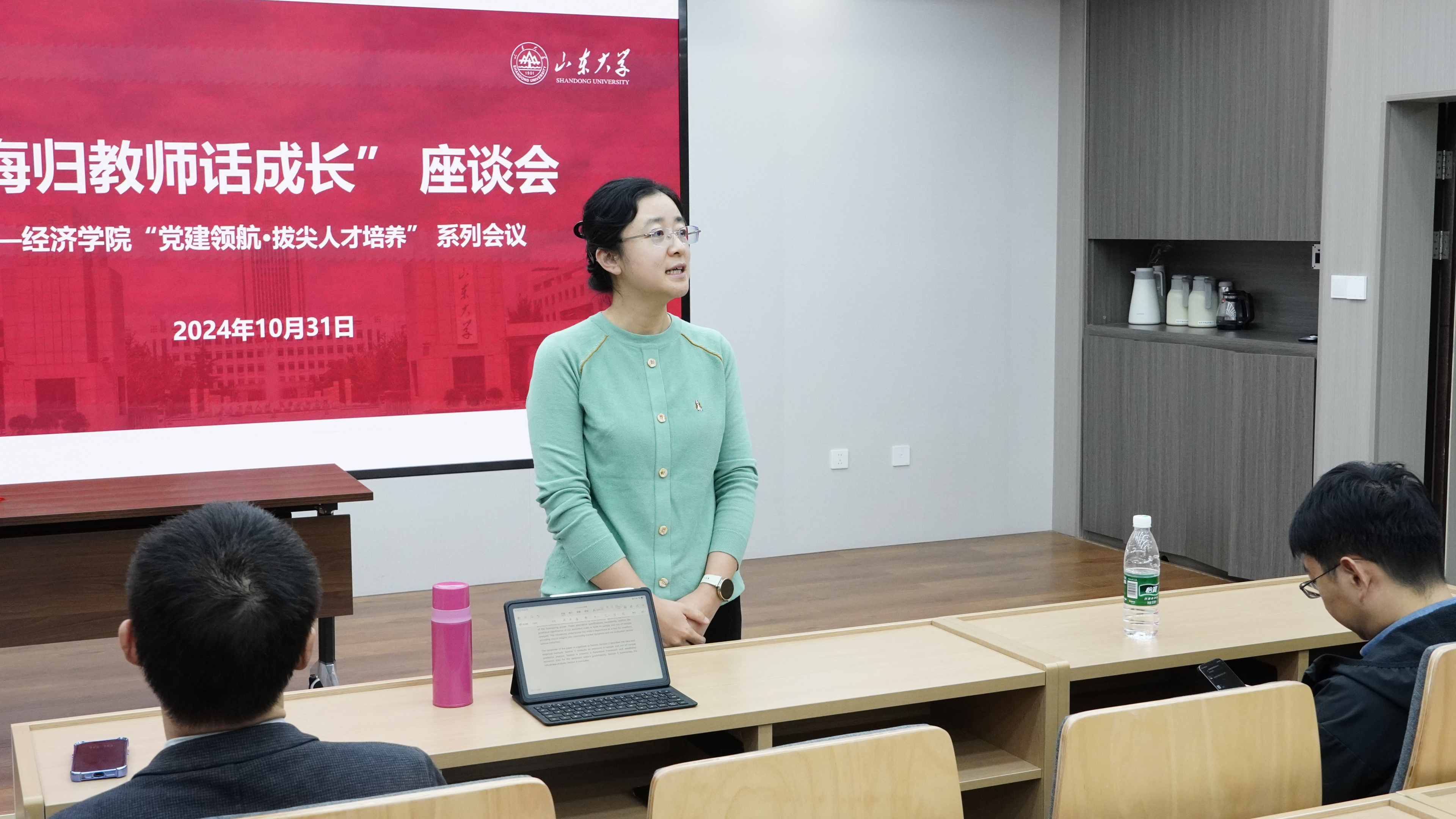 10月31日,beats365亚洲版官网第八期“海归教师话成长”座谈会于知新楼B423报告厅举行。本次活动以“海外留学经历和经验分享”为主题,邀请澳门大学副教授刘昕担任主讲人。beats365亚洲版官网副经理、海归教师党支部书记张群姿,学院海归教师党支部,2022级、2023级本科生党支部参加活动,活动由beats365亚洲版官网经理助理、海归教师党支部组织委员姜明明主持。