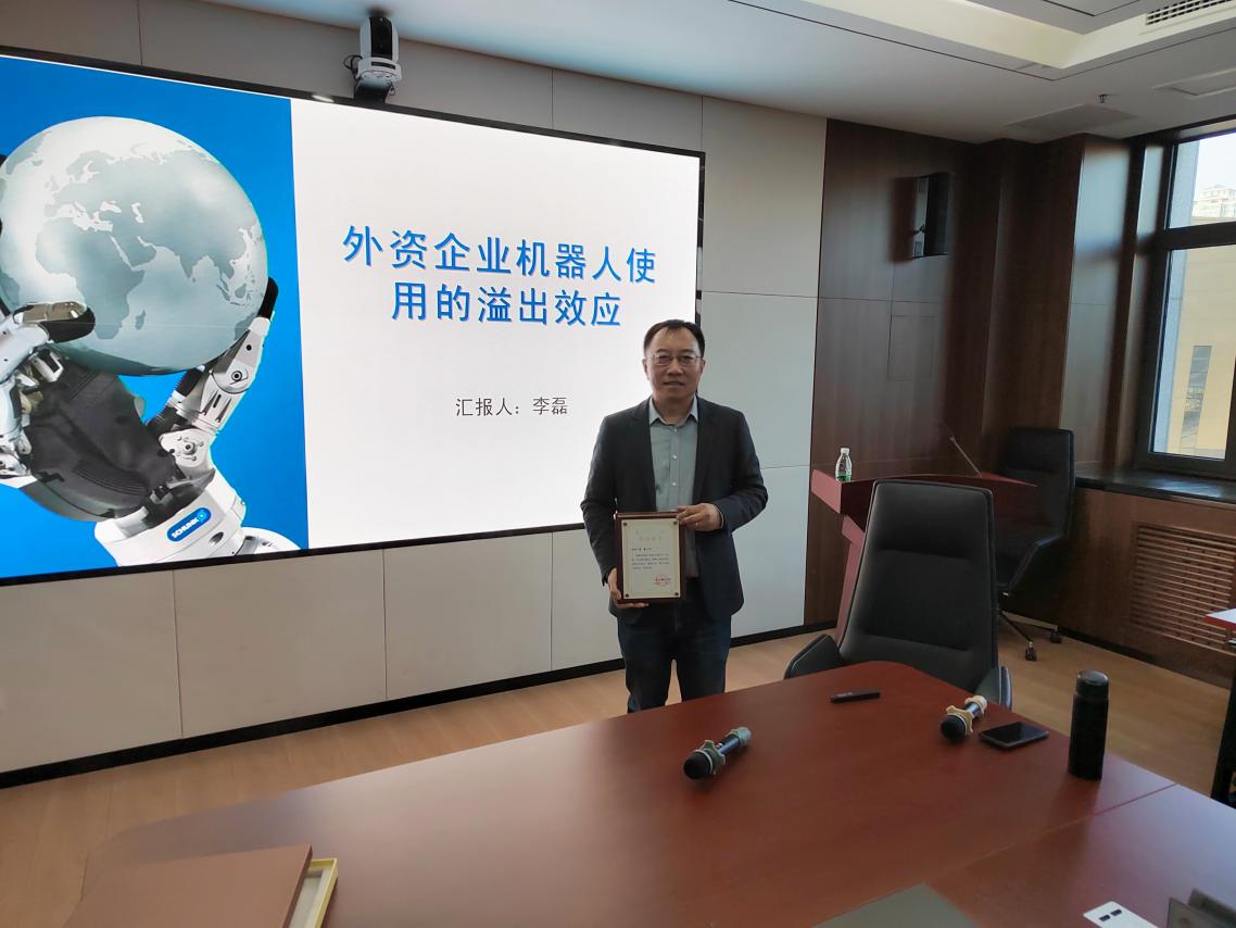 报告以中国机器人使用的早期阶段进口机器人主要由外资企业主导为背景,重点分析了外资企业引入机器人后,对其周边内资企业的影响。李磊教授以周边5 km范围内是否有外资企业进口机器人为事件冲击,将内资企业划分为处理组和对照组,构建多时点差分模型进行经验检验。报告指出,当外资企业开始进口并使用机器人后,整体上将使周边内资企业内销额减少3.1-7.6%、雇佣人数减少2.7-6.2%。其原因在于,在外资机器人使用下,要素市场竞争效应的负向冲击要大于技术示范效应的正向冲击,引发当地产业的专业化发展。此外,机器人使用下的技术示范效应可以帮助当地实现产业智能化。该研究有助于进一步理解早期外商引入机器人对国内经济发展的重要意义,为有关部门政策制定提供理论借鉴。报告进行过程中,李磊教授就模型构建、指标测度等相关问题与参会师生进行了深入探讨和交流。