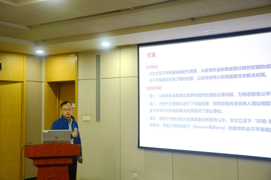 beats365亚洲版官网特聘教授解垩作题为“共同富裕视角下的相对贫困治理:教育机会与财政作用”的报告,从教育机会角度出发研究相对贫困的治理问题。通过延展世代交叠理论,报告将财政相关变量纳入理论模型,最终发现环境因素造成的教育机会不平衡会加剧相对贫困,而公共财政支出能够在二者当中发挥调节作用,减弱其引致的贫困,指出应充分发挥公共财政支出的普惠价值。