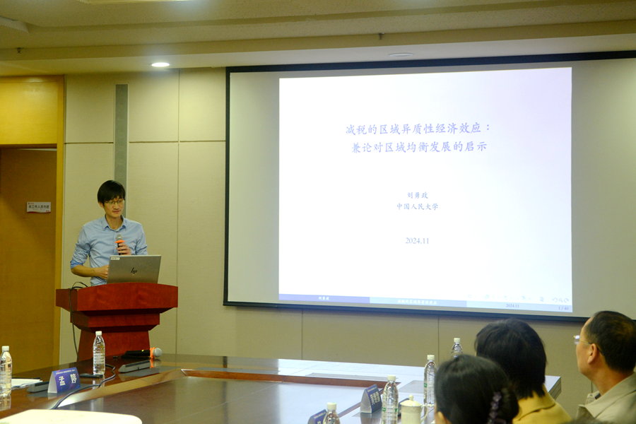 中国人民大学财政金融学院教授刘勇政作题为“减税的区域异质性经济效应:兼论对区域均衡发展的启示”的报告,聚焦于有关减税的区域异质性经济效应,指出总体上减税政策有利于促进企业投资并推动经济增长,但效应呈现明显的区域异质性;理解这种区域异质性对于更全面的把握减税效应具有重要政策启示意义。进一步,报告分析了减税区域异质性的原因,一是分权体制下的财政激励影响,二是财政压力及有无其他融资渠道的作用。他以固定资产加速折旧政策为例进行分析,得出低税收分成比例地区、发达地区减税效果较好的结论,并从微观投资、宏观经济增长层面验证,最后针对区域落实差异问题提出如配套转移支付、转变分成模式等相关政策建议。