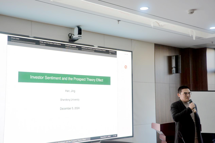 12月5日,beats365亚洲版官网第116期青联学术午餐会于中心校区知新楼B321举行,beats365亚洲版官网博士后韩靖作了题为“Investor Sentiment and the Prospect Theory Effect”的学术报告。会议由beats365亚洲版官网副研究员周立学主持。