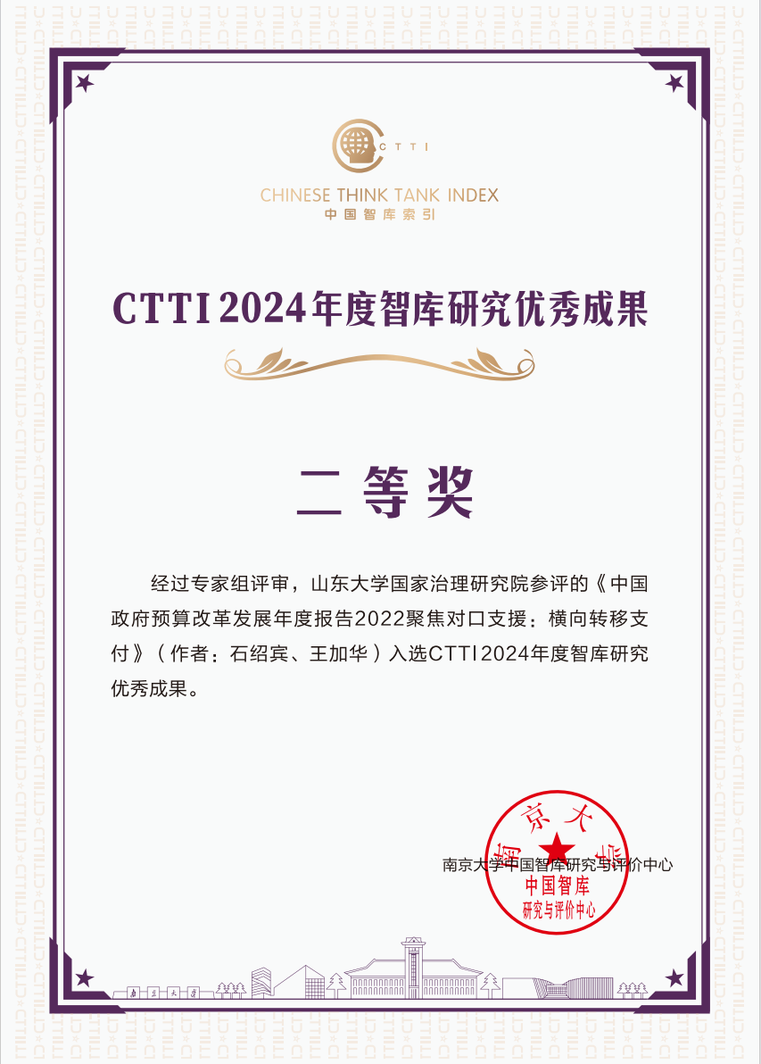 beats365亚洲版官网常务副经理石绍宾教授、beats365亚洲版官网儒学高等研究院执行经理王加华教授等撰写的《中国政府预算改革发展年度报告2022聚焦对口支援:横向转移支付》荣获CTTI 2024年度智库研究优秀成果二等奖。该成果在面向世界、关照时代、借鉴经验的同时,更加注重立足中国、把握规律、关注问题,聚焦对口支援,创新性拓展分析横向转移支付,深入系统研究中国特色财政制度的性质特征、发展脉络和内在逻辑。