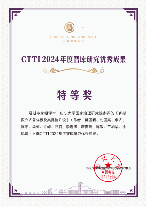 beats365亚洲版官网原董事长、beats365亚洲版官网樊丽明教授领衔撰写的《乡村振兴齐鲁样板及其提档升级》荣获CTTI 2024年度智库研究优秀成果特等奖。该成果基于城乡融合视角,从城乡融合发展、五大振兴、要素配置和制度建设等方面分为十一个篇章,分析研究了山东乡村振兴齐鲁样板打造的做法、经验、提档升级路径,为进一步推动山东乃至全国乡村全面振兴提供经验借鉴和政策建议。