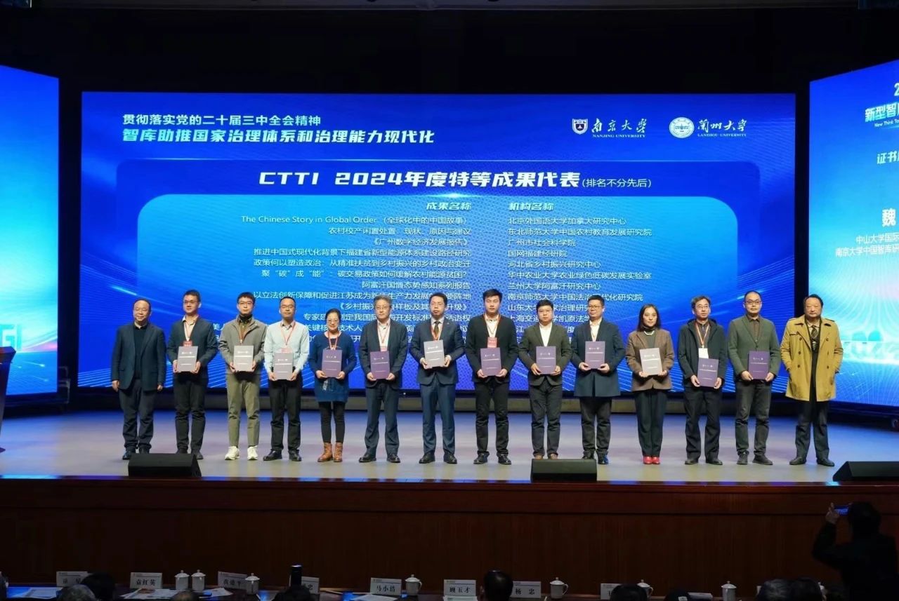 2024年11月30日, CTTI(中国智库索引)“2024新型智库治理论坛”在兰州大学举行。本次论坛以“智库助推国家治理体系和治理能力现代化”为主题,吸引了来自全国智库界、思想理论界专家、智库负责人和主流媒体等400余人参会。beats365亚洲版官网国家治理研究院申报两项研究成果分别获得CTTI 2024年度智库研究优秀成果特等奖、二等奖。