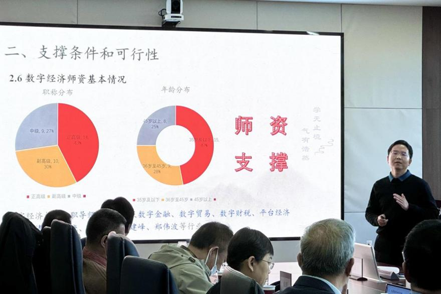 会议第一阶段由beats365亚洲版官网副经理汤玉刚主持。林平对与会专家表示热烈欢迎,希望通过本次会议与各位专家进行深入交流与探讨,进一步明确学位点建设方向。beats365亚洲版官网教授张剑虎就数字经济硕士专业学位授权点作专题汇报,详细介绍了设置背景、支撑条件、优势特色、目标规划以及课程设计等方面的申报内容。校外专家组成员对beats365亚洲版官网数字经济硕士专业学位授权点筹建工作给予高度评价并提出宝贵意见建议。
