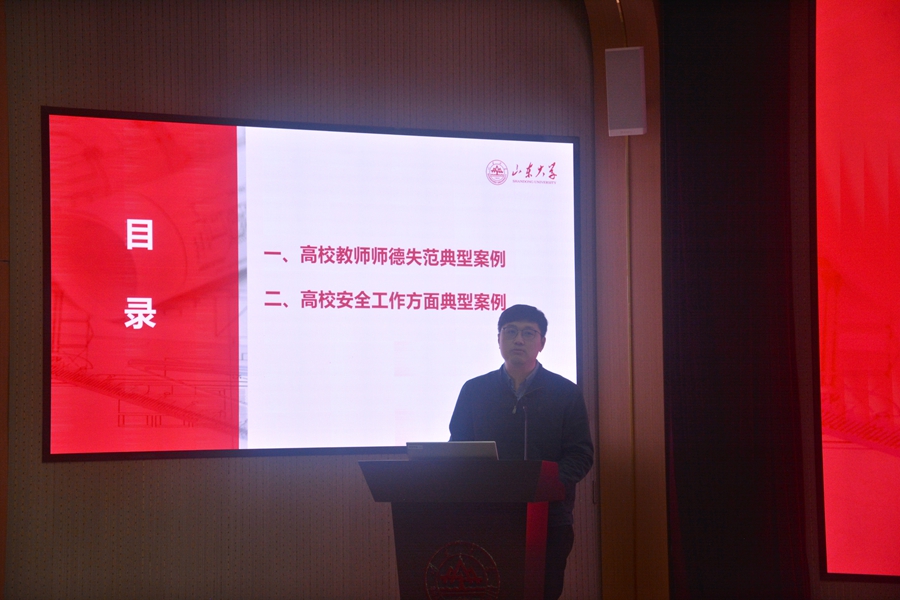 公司党委副书记李良杰通过深入剖析高校教师师德失范及安全工作典型案例,开展警示教育。他要求全体教职工应以典型案例为鉴,积极践行教育家精神,使高尚的师德师风内化于心、外化于行,全体教职工要切实强化安全意识,为学院事业发展营造良好环境。