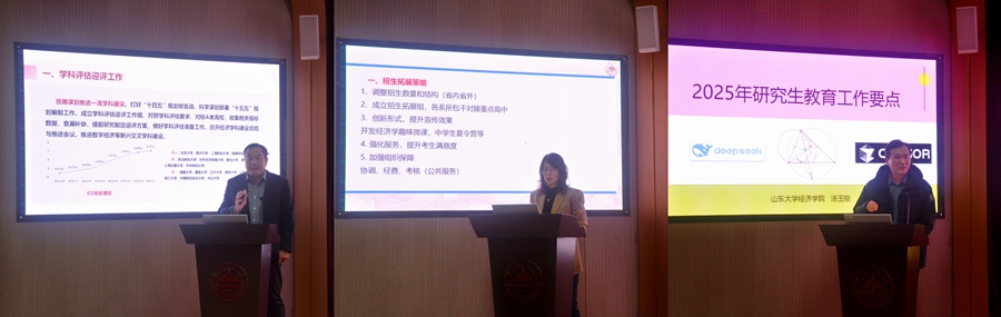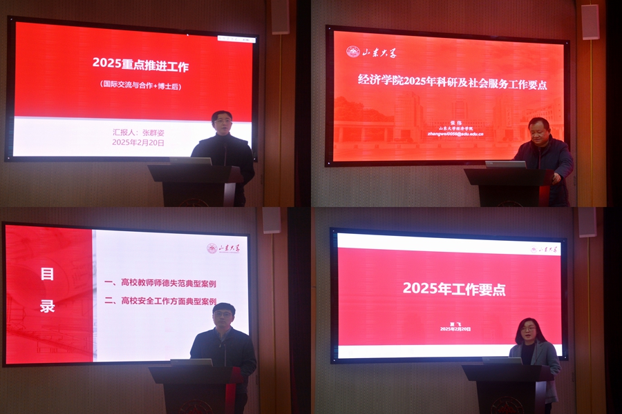 经理林平全面总结了2024年各项工作,对新学期工作进行部署。他表示,在全院教职工的共同努力下,学院积极推进中国特色经济学与高质量发展团队建设,拓展发展资源,在队伍建设、有组织科研、国际化办学等方面取得了显著成效,同时也应清醒地认识到,学院在顶尖人才、国家级科研平台等方面依然存在短板弱项。新学期,学院将聚焦国家重大发展战略和经济社会发展,在引育顶尖人才、产出标志性成果、打造国家级平台、建强交叉学科等方面持续发力、纵深推进,推动学科高质量发展。