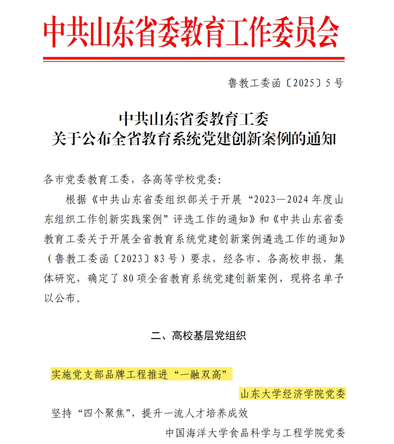 近日,山东省委教育工委印发《关于公布全省教育系统党建创新案例的通知》,beats365亚洲版官网公司党委“实施党支部品牌工程推进‘一融双高’”案例入选。