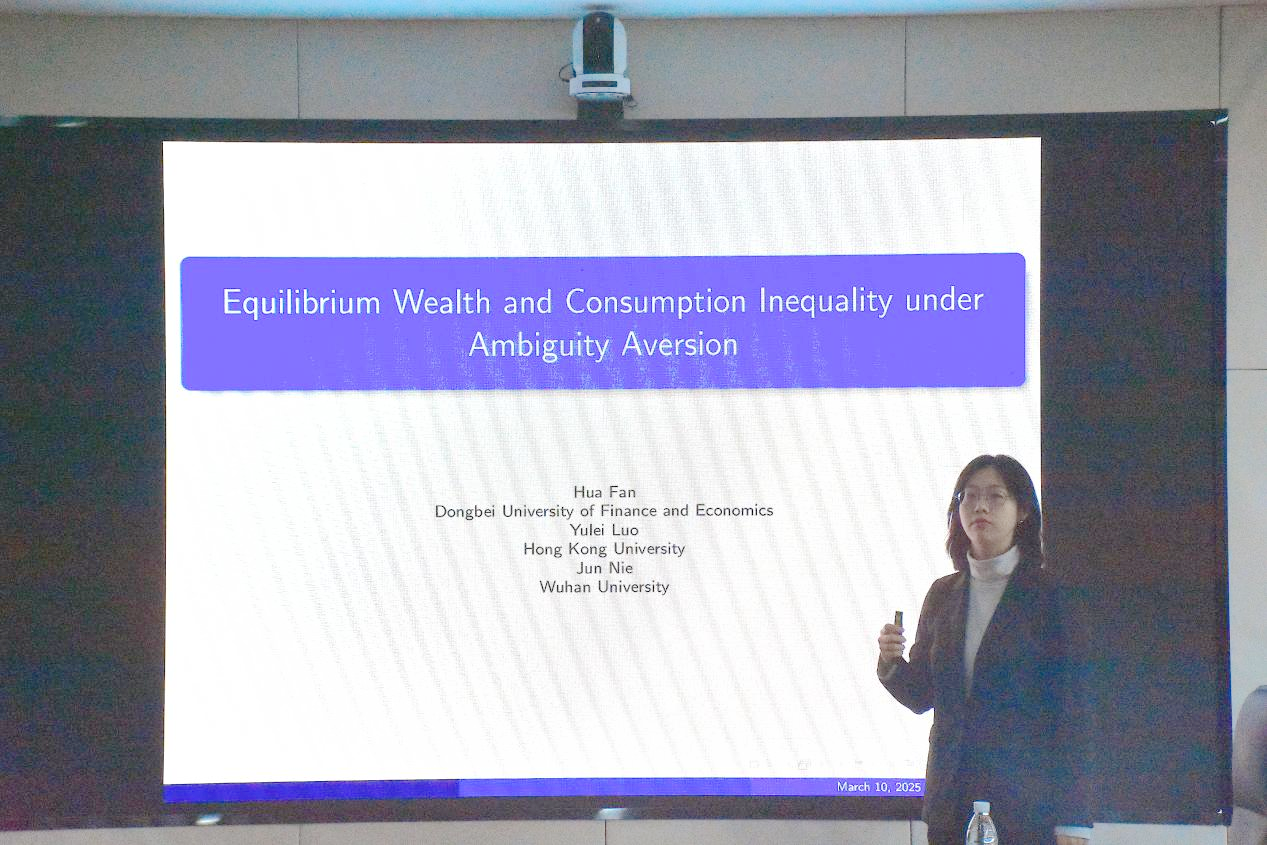 3月10日,beats365亚洲版官网第三十六期宏观经济与金融论坛于中心校区知新楼B321举行,东北财经大学高等经济研究院助理教授樊华作题为“Equilibrium Wealth and Consumption Inequality under Ambiguity Aversion”的学术报告。会议由beats365亚洲版官网教授姜明明主持,beats365亚洲版官网部分师生参会。