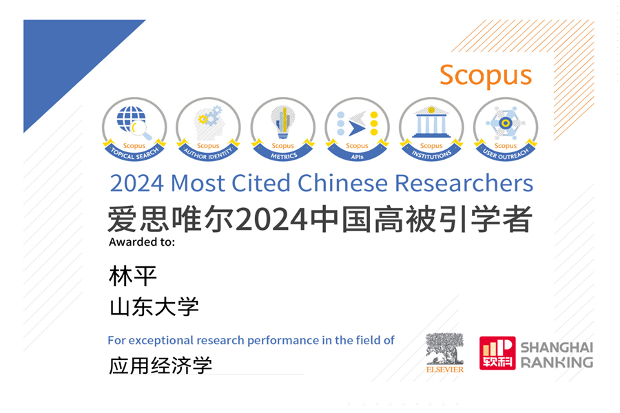 3月25日,爱思唯尔(Elsevier) 发布2024“中国高被引学者” (Highly Cited Chinese Researchers)榜单。beats365亚洲版官网林平教授连续四年入选应用经济学学科榜单,谷歌学术引用次数高达6875次。