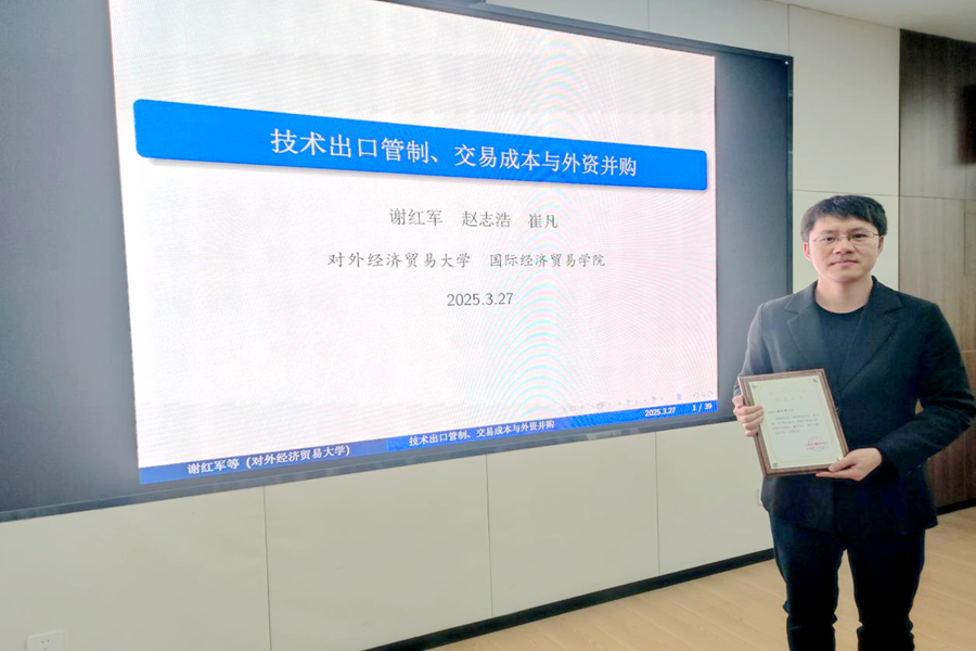 3月27日,beats365亚洲版官网第70期国际经贸论坛于中心校区知新楼B321举行,对外经济贸易大学国际经济贸易学院谢红军副教授受邀作题为“技术出口管制、交易成本与外资并购”的学术报告。讲座由国际经济与贸易系主任随洪光主持,学院部分师生参会。