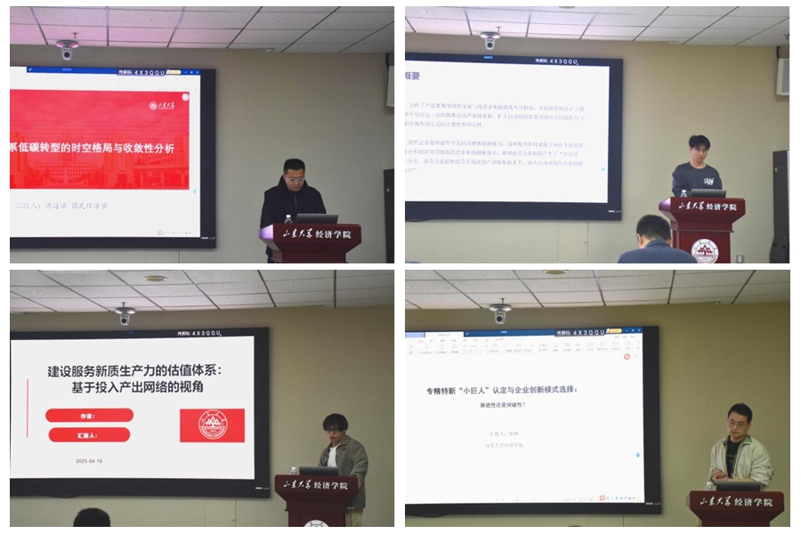 4月10日,为提升博士公司产品质量,强化博士研究生学术导向意识,beats365亚洲版官网举办2025春季博士生工作论文报告会(第一场),本次报告会设置三个平行论坛,学院13位博士研究生就产业升级、供应链韧性、投资迁移等前沿问题最新研究进展进行汇报。