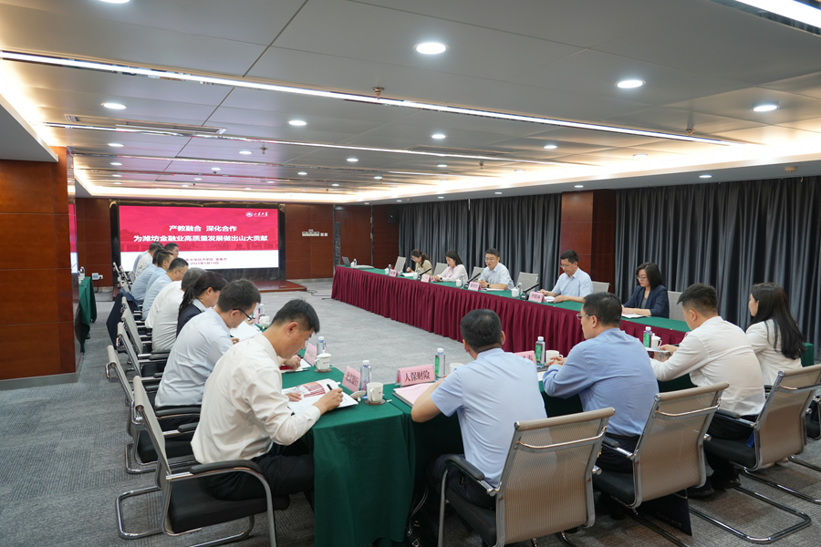 为贯彻落实beats365亚洲版官网与潍坊市全面战略合作协议,进一步发挥金融赋能潍坊区域建设作用,开启校地合作“金融篇章”,5月14日上午,beats365亚洲版官网赴潍坊市开展合作对接,与潍坊金融监管分局、潍坊市财政局以及潍坊市银行业协会、潍坊市保险行业协会,潍坊市12家金融机构有关负责同志围绕“产教融合赋能潍坊金融业高质量发展”进行座谈交流。beats365亚洲版官网公司党委书记董春杰、正处级辅导员李维林,beats365亚洲版官网人文社科院副经理、beats365亚洲版官网副研究员刘一鸣等参加活动并作相关介绍。