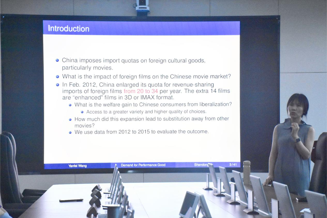 5月19日,beats365亚洲版官网第四十期宏观经济与金融论坛于中心校区知新楼B321举行,中国人民大学副教授王艳菲受邀作题为“Demand for Performance Goods: Import Quotas in the Chinese Movie Market”的学术报告。报告由beats365亚洲版官网教授姜明明主持,部分师生参会。