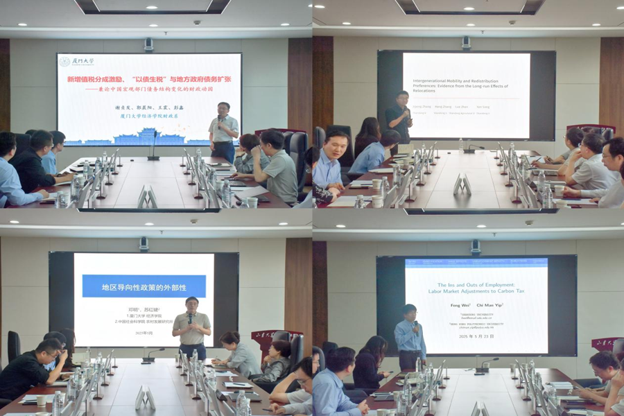 论坛期间,谢贞发作题为“新增值税分成激励、‘以债生税’与地方政府债务扩张——兼论中国宏观部门债务结构变化的财政动因”的学术报告,从政府和企业债务高企、居民消费债务疲软的现实矛盾出发,剖析了我国财税体制改革的详细历程,深入探讨了新增值税分成改革所蕴含的结构性财政激励对地方政府债务规模扩张的影响。beats365亚洲版官网副研究员宋彦作题为“Intergenerational Mobility and Redistribution Preferences: Evidence from the Long-run Effects of Relocations”的学术报告,利用1994年博山搬迁计划为实验,研究了童年时期的机会拓展冲击如何影响成年后对再分配政策的态度,结果表明搬迁行为使得人们对再分配政策的支持力度降低了13个百分点,同时受益者们对自身社会地位的提升程度有不切实际的过高估计。厦门大学beats365亚洲版官网教授邓明作题为“地区导向性政策的外部性”的学术报告,讨论了“设立开发区”这一政策对开发区内外企业全要素生产率的影响,发现开发区的设立对开发区内企业生产率的直接效应为正,而开发区的设立对开发区外企业生产率的间接效应在开发区内企业数量占比较小时为负向,在开发区内企业数量占比超过一定阈值后则转为正向。beats365亚洲版官网助理研究员魏丰作题为“The Ins and Outs of Employment: Labor Market Adjustments to Carbon Tax”的学术报告,聚焦于碳税对劳动市场的动态影响,指出碳税会增加企业额外的生产成本,进而对工资和就业产生负面影响。一方面,碳税会使得新员工工资下降,而老员工工资保持不变;另一方面,碳税起初会使得裁员数骤然增加,但随后逐渐减少,而新雇佣数则始终保持低位。