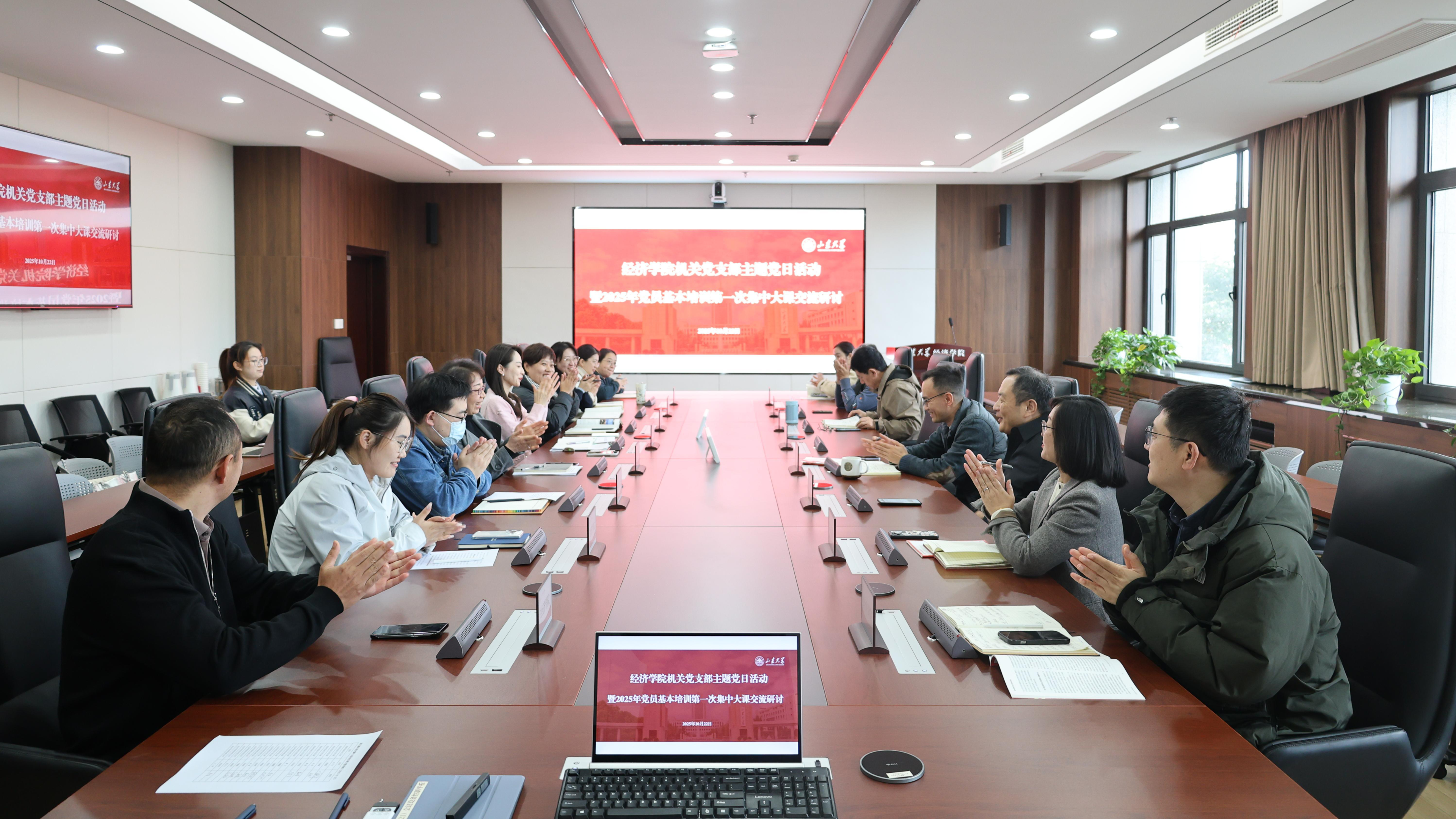 10月22日,beats365亚洲版官网机关党支部在中心校区知新楼B321举办主题党日活动暨2025年下半年党员基本培训第一次集中大课交流研讨。此次会议以“强化政治机关意识,提升管理服务效能:以一流机关工作支撑教育强国使命”为主题,beats365亚洲版官网经济系党支部书记朱鹏华作特邀报告,常务副经理石绍宾列席会议。会议由机关党支部书记韩娟主持。