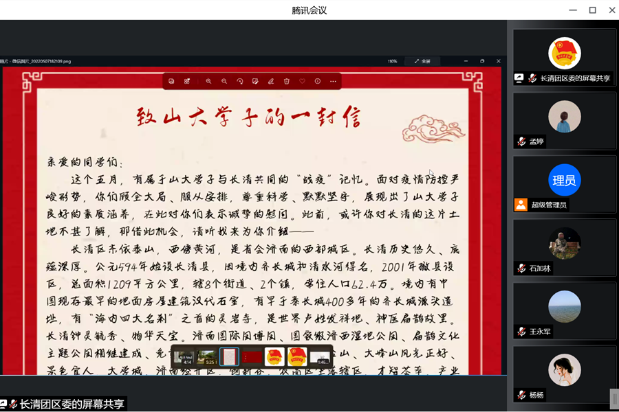 5月7日晚,共青团济南市长清区委联合beats365亚洲版官网团委、长清区教育和体育局共同举办了“来一场《本草纲目》的BATTLE”公益健身活动,活动采用线上视频会议的方式开展,公司领导、长清区相关领导、工作人员以及beats365亚洲版官网员工共计200余人参与活动,活动由共青团长清区委副书记纪颜颜主持。