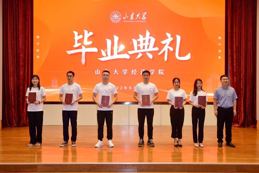 最后,林平经理进行致辞并向毕业生颁发学位证书。他向圆满完成学业的23名博士、201名硕士生、242名本科毕业生表示祝贺,向为毕业生成长成才辛劳付出的老师们表示感谢,向支持学院发展的社会各界致以崇高的敬意。林平对学院近年来取得的发展成绩给予了高度肯定,并对毕业学子提出希望:一是擦亮初心,引领人生航向。坚守初心,放飞青春理想,走出一条更有高度、更有境界的人生道路。二是勇担使命,投身复兴伟业,以所学经济学理论知识指导实践,传承家国情怀的山大基因和品格。三是永久奋斗,绘就精彩人生。征途漫漫,惟有奋斗,有信念、有梦想、有奋斗、有奉献的人生才是有意义的人生。最后林平向毕业学子送上殷切嘱托,希望他们苦干实干,胸怀天下,心系家国,追求卓越。