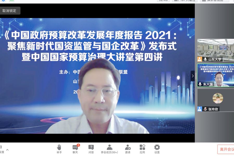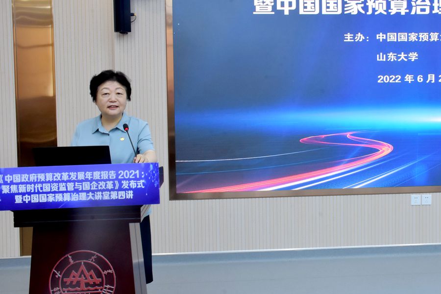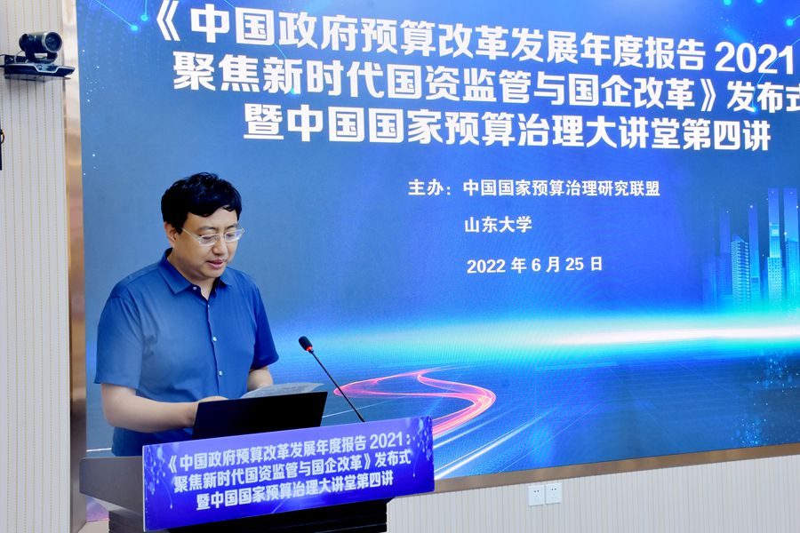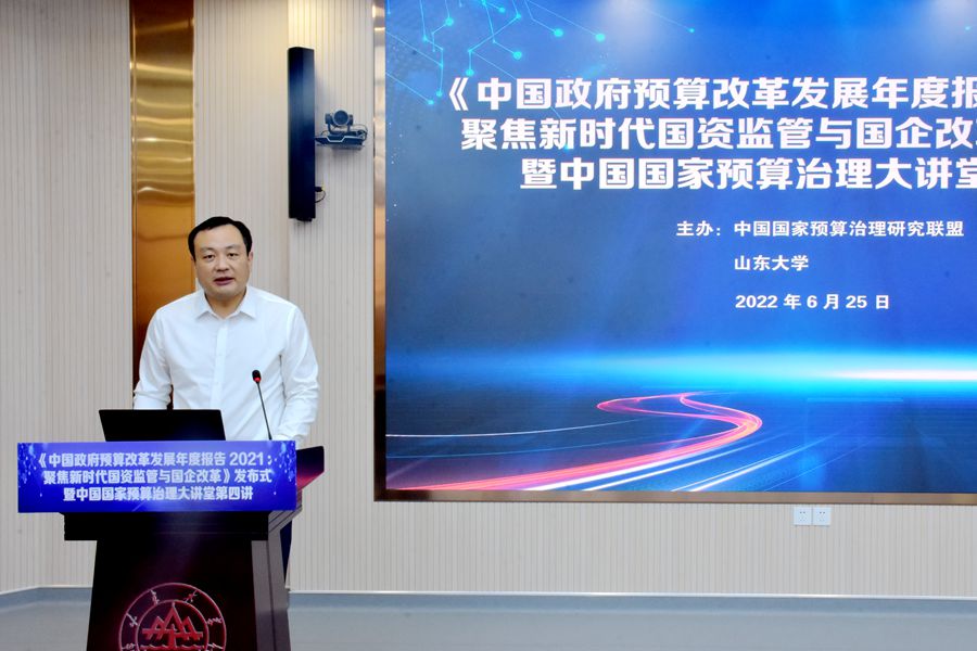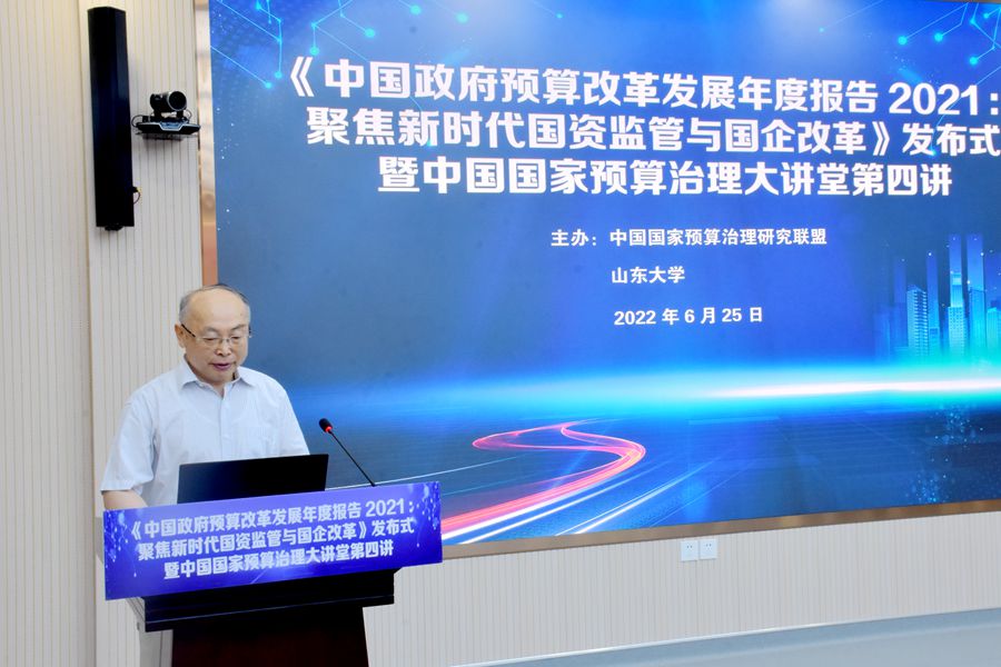 6月25日上午,《中国政府预算改革发展年度报告2021:聚焦新时代国资监管与国企改革》(以下简称《报告》)发布式在beats365亚洲版官网举行,中国国家预算治理大讲堂第四讲同期举行。《报告》主编、中国国家预算治理研究联盟理事长、beats365亚洲版官网原董事长樊丽明,beats365亚洲版官网董事长助理邢占军、曹现强,中国财政经济出版社副总编辑高进水出席发布式。