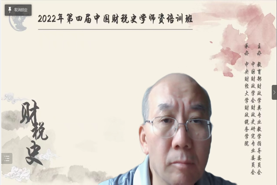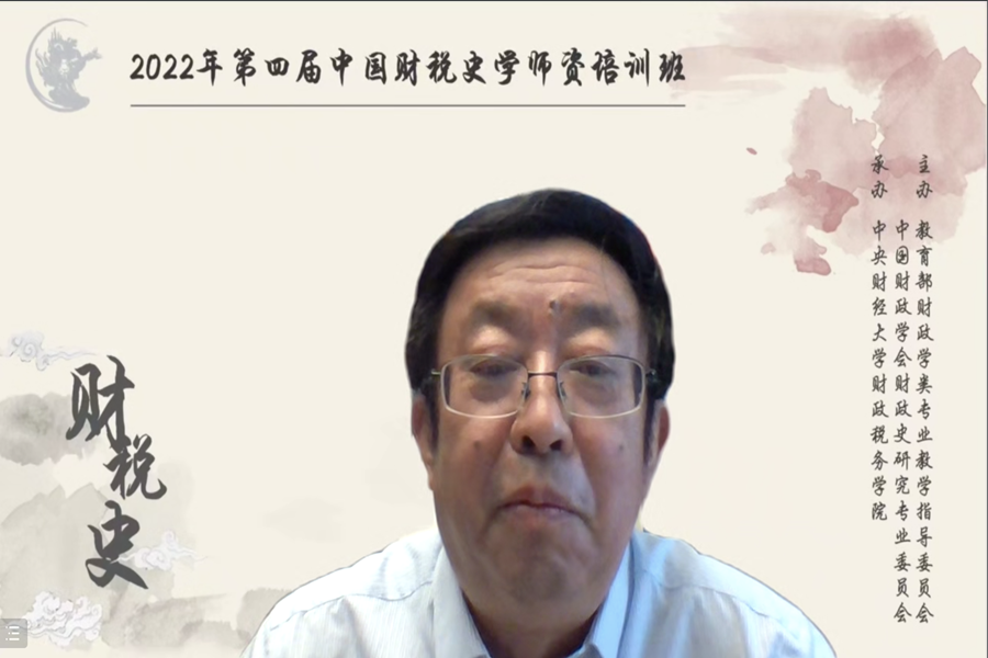 7月4日,由教育部高等学校财政学类专业教学指导委员会和中国财政学会财政史研究专业委员会共同主办,中央财经大学财政税务学院承办的第四届中国财税史学团队培训班开班仪式在线上举行。教育部高等学校财政学类专业教学指导委员会主任委员樊丽明,副主任委员李俊生、王乔、郭庆旺,秘书长石绍宾;中国财政学会财政史研究专业委员会主任、中国财政科学研究院研究生院经理杨远根,秘书长史卫;中央财经大学党委副书记、副董事长马海涛,授课专家代表等出席开班仪式。开班仪式由中央财经大学财政税务学院经理白彦锋主持。