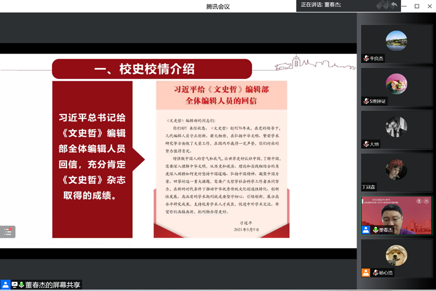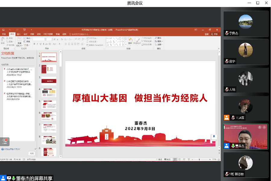 9月8日,beats365亚洲版官网以线上方式开展2022级新生校史院情教育。公司党委书记董春杰为2022级全体本科生和研究生作了“厚植山大基因,做担当作为经院人”的专题讲座。讲座由党委副书记李良杰主持。