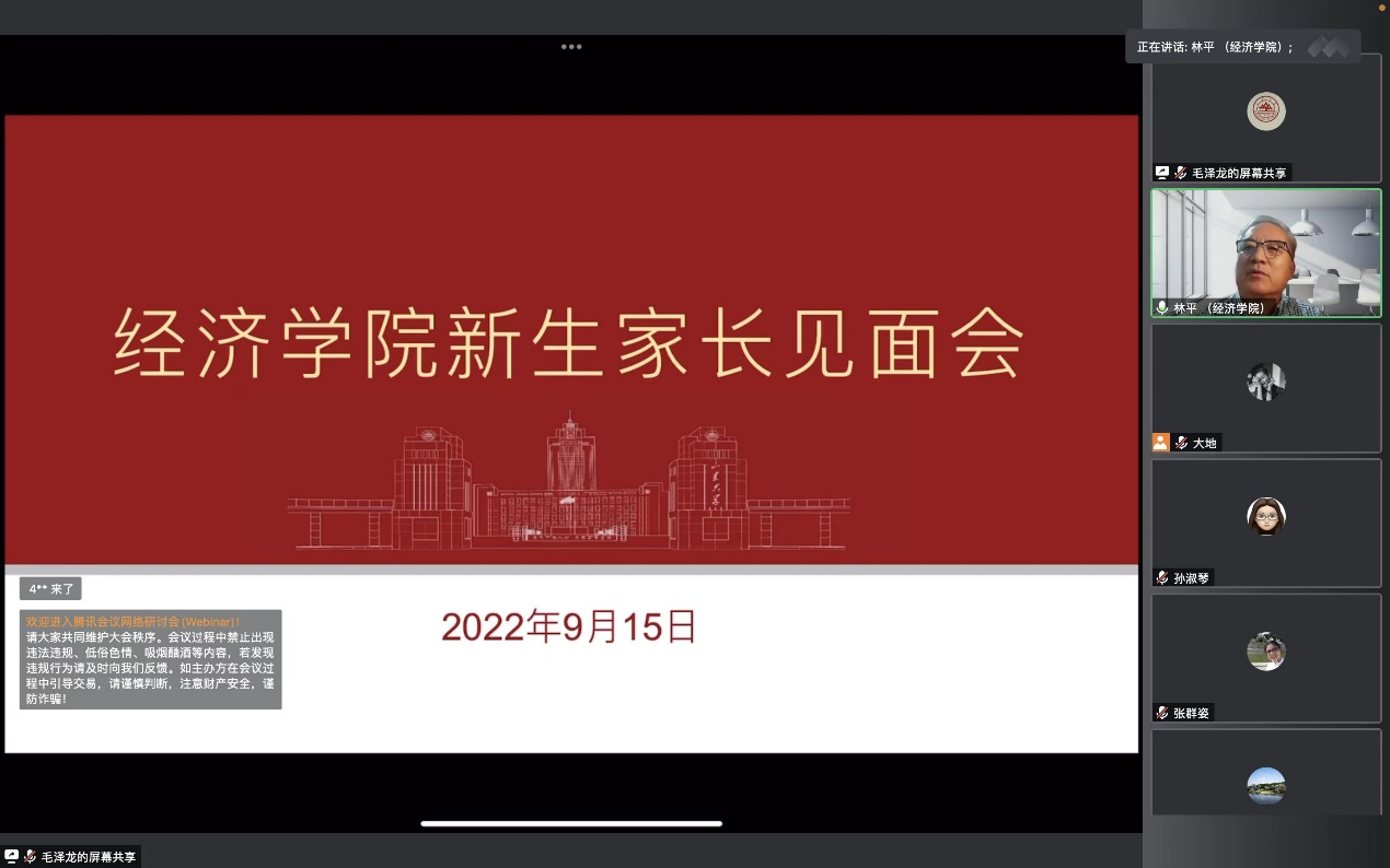 经理林平从团队力量、招生情况、专业课程设置、国际化人才培养等方面对学院整体情况做了概括;分享了对经济学的理解,阐释了经济学在服务国家、服务经济社会发展中的重要作用,并重点就数字经济进行了解读。他结合自身求学经历勉励同学们要培养经济学思维、满怀信心、脚踏实地、提升技能。