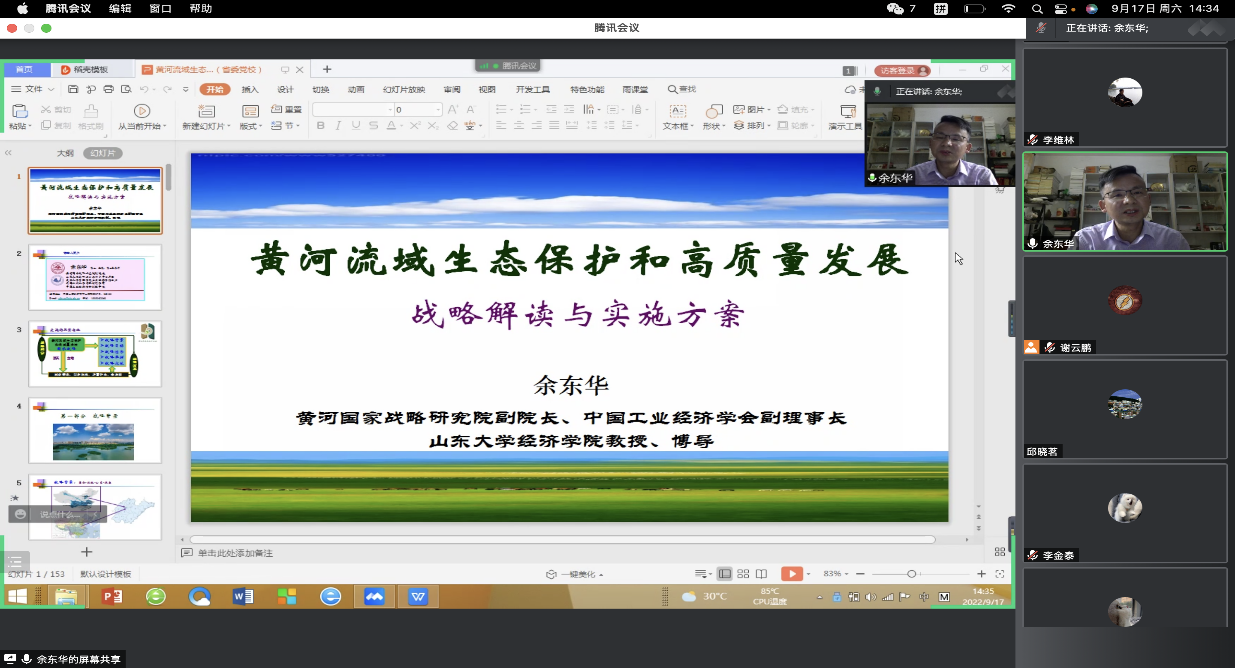 提高创新能力,营造科研氛围。为提升研究生的科研创新能力,营造浓厚的学术氛围,公司举办了第二十二期研究生知新学术论坛,邀请余东华教授分享了题为“黄河流域生态保护和高质量发展:战略解读与实施方案”的报告,阐述了黄河流域生态保护和高质量发展国家战略的战略背景、战略目标、战略任务、战略举措和战略成效,让同学们感受到了国家有要求、山东有担当、齐鲁有作为、山大走在前的使命担当,以此呼吁研究生树立扎根一线、将论文写在祖国大地上的理想抱负。