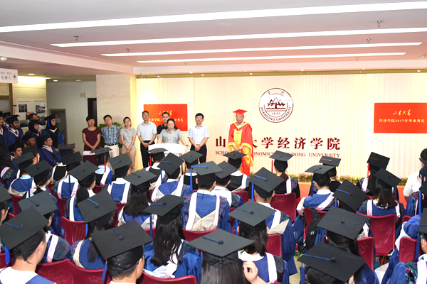 公司领导班子成员、教师代表、辅导员与2017届博士、硕士、职工、本科毕业生参加典礼。毕业典礼不仅是毕业生阶段学业圆满的句号,更是他们人生新乐章的前奏。他们即将带着山大经院人的骄傲、荣光与自信迈出校园,走向广阔的天地,书写新的辉煌。