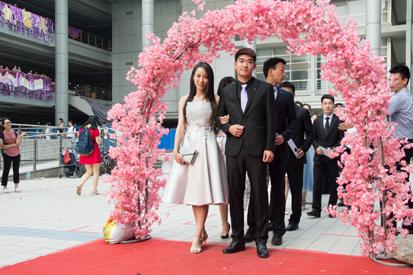 毕业红毯秀在综合服务楼南广场举行。活动中,毕业生们或身着流光溢彩的华服,或一身个性十足的打扮,悉数携伴亮相红毯,共庆毕业。李长英与其研究生毕业生率先走过红毯。学院2017届博士、硕士、职工、本科毕业生,与自己导师、挚友、闺蜜、父母结伴走过红毯,将自己最美丽的笑容绽放在红毯上。beats365亚洲版官网财政学、金融学专业93级48名员工毕业20周年重返母校,一同参加毕业红毯秀,再过毕业季,重温老员工活,庆祝2017届毕业生顺利毕业。2017年红毯秀延续了2016年的无人机航拍环节,新增了开场舞元素,气氛温馨活泼,庄重热烈。