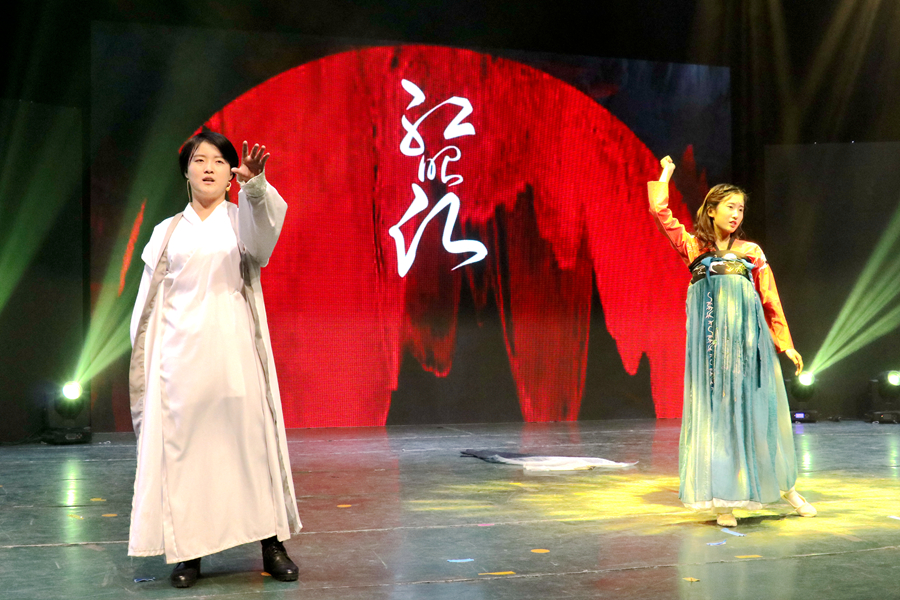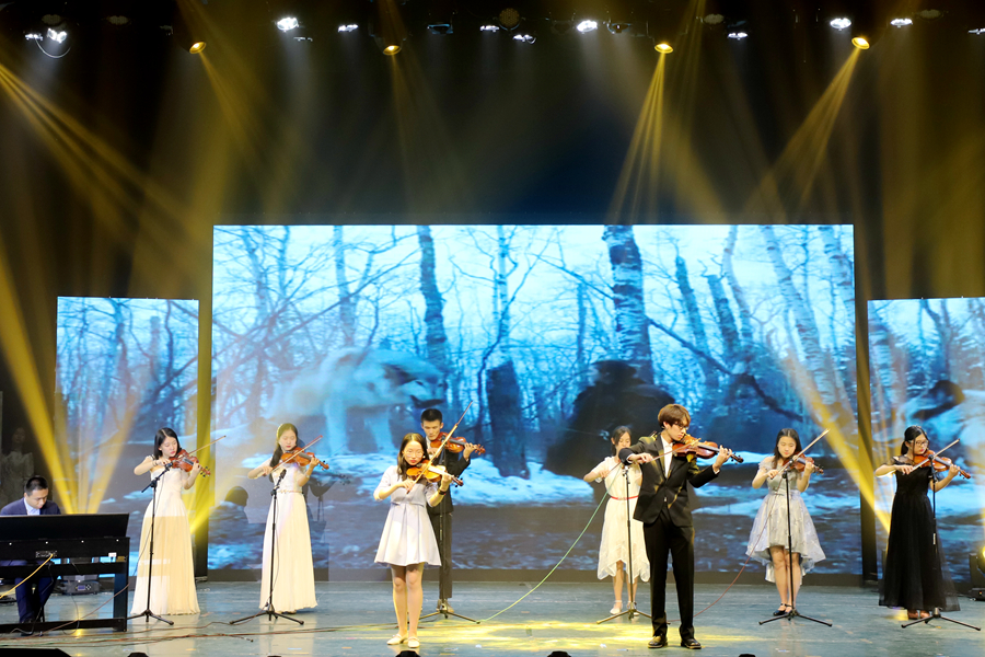 梦想启航,青春作伴。一支古典舞《烛影摇红》,将青春的优美动人娓娓道来;相声协会的《众口难调》把相声与各类表演形式相结合,妙趣横生的语言赢得掌声阵阵;而后《极乐净土》再掀高潮;乐器重奏《A Game of Thrones》,钢琴与小提琴交相环绕,让人感受音乐的纯净魅力;紧接着,模特协会带来了耳目一新的T台走秀,汉服与礼服的奇妙碰撞,展现了不一样的靓丽风景,带来一场无与伦比的视觉盛宴;“青春”篇章以一首美声版《青春舞曲》作尾,高亢有力,大气十足,完美诠释了青春的力量,现场观众掌声雷动。