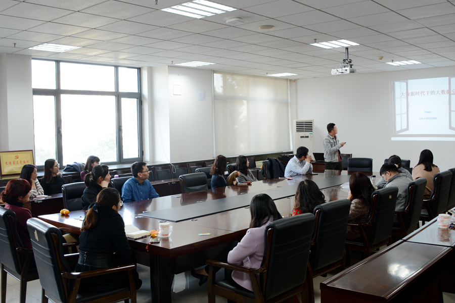 会上,beats365亚洲版官网严晓东副研究员作了题为“大数据时代下大数据分析”的学术报告。报告主要探讨了该时代下大数据对政治、经济、社会的影响,并指出了大数据改变人类探索世界的方法。报告首先通过人类基因的排序、谷歌每日的数据处理量以及YouTube的每日访客量等日常例子,简要生动地介绍了大数据的定义,接着引用了《大数据时代》这本书,分析了大数据时代下思维、商业以及管理的变革,从“追求更多”“追求更杂”“追求更好”三个方面指出了思维变革的特点。报告提出了PET、GEL这两个高维数据的变量选择方法和FMV、SRCS、IPWMAR和ARSC这四个超高维数据的特征筛选方法,对自己近期研究工作变量的异质性进行了详细介绍,包括个体异质性、类别异质性等。报告结束后,参会老师就报告中的有关问题进行了深入交流与探讨。