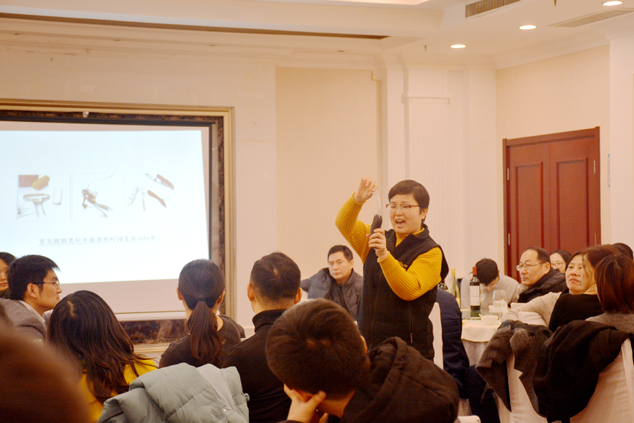 午餐会上,毕业于山东农业大学葡萄与葡萄酒工程专业、英国WSET认证高级品酒师、来自澳洲1847酒庄的吴爱民为大家讲解了葡萄酒的相关知识。首先,吴爱民指出了品鉴葡萄酒需要三大条件即良好的自然光、洁净的环境以及干净的口腔,她表示良好的自然光可以让品鉴者准确地判断葡萄酒的颜色和光泽,洁净的环境可以减少环境异味对葡萄酒香气的影响,干净的口腔能够让品鉴者能更好地感受葡萄酒的口感。接着,吴爱民老师现场为大家演示用开瓶器开红酒的过程,并介绍了开瓶器的种类,吴爱民强调,葡萄酒开瓶之后需要进行醒酒这一步骤,但是并不是所有的葡萄酒都需要醒酒,醒酒的目的是为了去除红酒中可能存在的沉淀物,祛除异味并使葡萄酒中单宁等物质的氧化,改善葡萄酒酸涩的口感。最后,吴爱民老师还为大家介绍了葡萄酒的品鉴顺序、品酒的温度、葡萄酒澄清度及颜色的判断,以及葡萄酒的纯净度、气味浓度和香味特征等特点。会后,吴老师针对相关问题作出了解答并与在场师生展开了讨论。