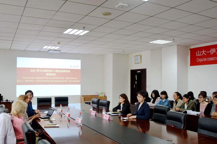 上午9时,山大-伊工大经济学2+2联合培养项目启动仪式在知新楼举行。beats365亚洲版官网副经理孙淑琴首先向代表团介绍了beats365亚洲版官网一校三地办学特色、学科布局和学校“双一流”建设取得的最新进展。她指出,山大高度重视国际学术交流与合作,两校经济学2+2联合培养项目为两校的合作交流奠定了良好的基础,并祝愿双方合作顺利。随后,贝加尔金砖学院副经理达吉雅娜.达维多娃介绍了伊尔库茨克国立理工大学金砖学院从创立之初,就希望通过大力拓展和深化国际交流合作履行办学职能的应有之义。作为一所年轻的学院,金砖学院为服务国际化的使命将积极培养国际化人才,通过与中国以及世界上多个国家的进一步合作,真正让员工拥有国际化视野。仪式结束后,beats365亚洲版官网副经理孙淑琴做了两校经济学2+2联合培养项目的介绍。她指出,近年来,学院不断加强国际化办学体系建设,全面推进公司产品改革,“引进来”和“走出去”的策略使得学院积极营造出了国际化氛围。目前,学院已与多10多个国家和地区、40多所知名大学建立了实质性合作关系。此次beats365亚洲版官网与伊尔库茨克国立理工大学经济学2+2联合培养项目必将进一步推动两校人才培养的国际化,同时也将为中国倡导的“一带一路”建设提供有力的人才输送。活动结束后,俄罗斯伊尔库茨克国立理工大学代表团参观了校博物馆和年画展,体验了中国传统文化。