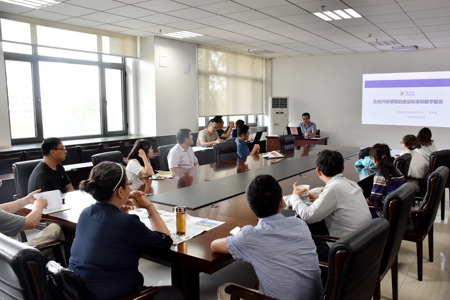 午餐会上,全国高等学校教学中心周岳峰作了题为“在线开放课程的建设标准和教学服务”的报告。首先周岳峰指出,在线开放课程是一种新型开放课程,突破了传统教学模式,它是以学习者为中心重构的网上教学课程,具备短教学视频、作业、测验、讨论、考试等完整的教学活动。在线开放课程主要分为两类:大规模在线开放课程和学校专属在线课程。大规模在线开放课程(MOOC)的特点是面向社会、广泛传播、自由参与、互动交流;而学校专属在线课程是针对校内学习,体现差异化、特色化。然后他介绍了世界各国主要MOOC平台、国际慕课的总体情况以及中国慕课的建设成果。中国在线开放课程的主要特征是高校主体、政府支持与社会参与。截止2019年4月底,beats365亚洲版官网已上线MOOC课程83门,位居中M开课高校的第三名;待上线课程10门。他还回顾了我国从2003年至今在线开放课程的发展历程,向在座各位老师介绍了国家精品在线开放课程的申报和认定及金课的要求、建设标准和流程。最后,他详细介绍了爱课程在线课程平台的现状、发展历程、课程支持服务体系、课程类型等相关内容。报告结束后,参会老师就报告中的有关问题与周岳峰进行了深入交流与探讨。
