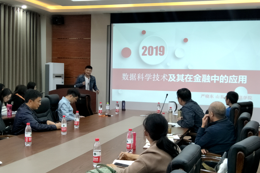 活动分为两个阶段。第一阶段举行了由两党支部共同发起且由商学院(威海)承办的“大数据背景下金融保险科技研讨会”,beats365亚洲版官网保险系四位党员王新军教授、于殿江副教授、严晓东副教授、裴有权副教授受邀在此次前沿科技研讨会作报告。 10月25日下午,裴有权副教授通过报告《Credit risk: Unsupervised clients clustering based on mixture cure model》强调了信用风险在金融领域起着非常重要的作用,提出了一种基于机器学习的方法对贷款者进行智能分类,并且能够同时预测每一类贷款者违约的概率,进而为银行决策者提供参考依据;严晓东副教授以《数据科学技术及其在金融领域中的应用》为题,介绍了从大数据到AI+金融中所涉及到的数据科学技术,包括大数据技术,统计方法以及机器学习等;10月26日上午,首先由王新军教授带来题为《新“农保”政策对老年人扶贫绩效的影响分析》的报告,介绍了目前最新的“农保”政策的,结合这个报告王新军教授给员工讲解论文的选题、文献综述的写法、数据搜集、模型选择以及论文写作;于殿江副教授为听众报告了《保险科技(互联网保险)发展及趋势》,分享了保险科技作为金融科技中的典型所使用的最前沿的科学技术, 揭示了目前保险科技的发展趋势以及存在的问题。四位公司党员教授的报告内容前沿,讲述清晰明了,引起商学院的师生们的激烈讨论。第二个阶段开展共建座谈会,双方相互介绍了各自党建概况、党员组成,统一了指导思想和探讨了各自的工作机制,在党建工作、人才培养、人才需求等方面进行了交流,是一次学界、业界相互学习的机会。会中深入交流了抓支部党建工作的做法和经验,分析了各自的不足,分别确立了日后党建共建有关安排和工作方向。