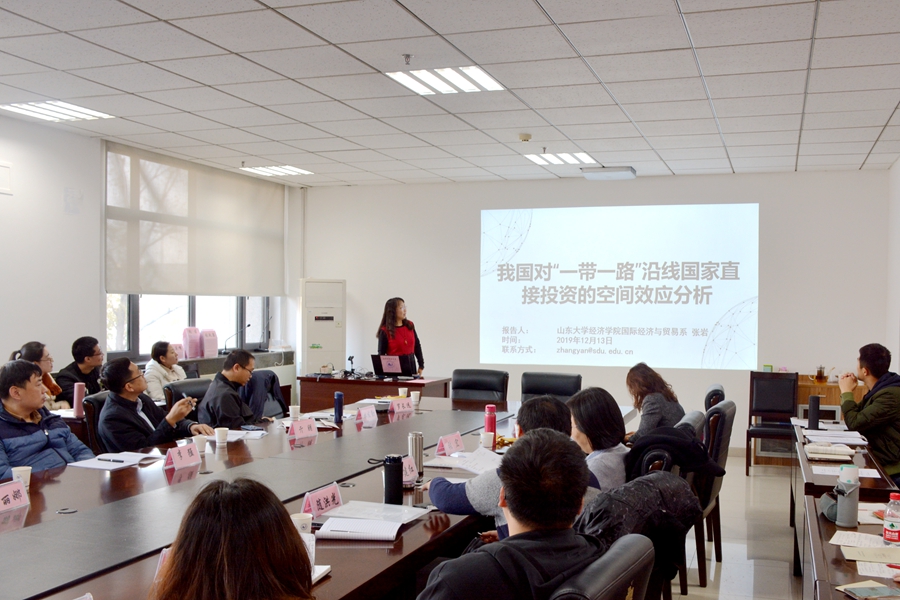 12月13日,beats365亚洲版官网“一带一路”投资与贸易学术研讨会在中心校区举行。beats365亚洲版官网副经理孙淑琴出席研讨会并致辞。复旦大学世界经济研究所教授、博士生导师罗长远,中国农业大学经济管理学院教授、博士生导师林发勤应邀出席会议并做了主题报告。beats365亚洲版官网、山东师范大学、济南大学、鲁东大学、山东女子学院的师生参加了研讨会。