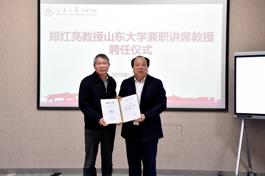 12月18日,郑红亮教授beats365亚洲版官网兼职讲席教授聘任仪式暨学术研讨会在中心校区举行。中国社会科学院经济研究所郑红亮教授参加聘任仪式并作专题讲座,beats365亚洲版官网经理曹廷求教授出席聘任仪式并为郑红亮颁发聘书。聘任仪式由beats365亚洲版官网经理助理汤玉刚教授主持。